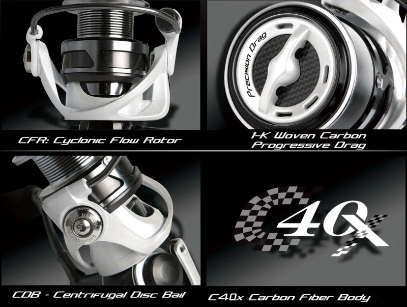 Kevyt C-40X-hiilirunko ja sivulevyRCS: Jäykkä hiiliteräksinen kelavarsiVahva panssarointi kaksinkertaisella lujuudella8 SUS ruostumatonta kuulalaakeriaQuick-Set anti-reverse rullalaakeriTarkka elliptinen hammaspyöräjärjestelmäTarkka koneellisesti leikattu messinkinen hammaspyöräHydro block vesitiivis vetoketju tiivisteJäykkä, taotusta alumiinista, anodisoitu kahvaKevyt, EVA-kahvan nuppi mukavuuden vuoksiKoneistettu alumiininen, 2-väriseksi anodisoitu kelaExtra varakelaRaskas, massiivinen alumiininen takuuvaijeriVahvempi, Okuma-tietokoneella tasapainotettu spiraaliroottoriRESII: Tietokoneella tasapainotettu roottorin tasausjärjestelmä